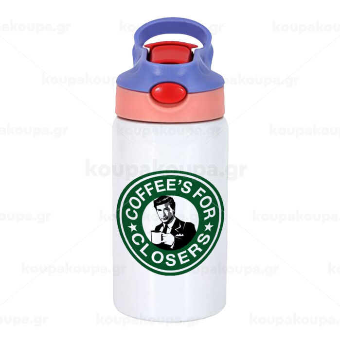 Coffee's for closers, Children's hot water bottle, stainless steel, with safety straw, pink/purple (350ml)
