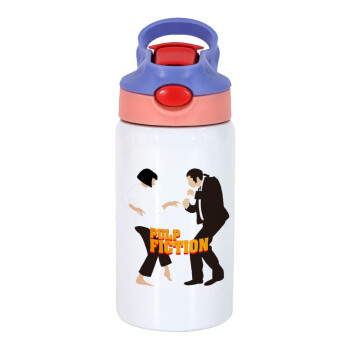 Pulp Fiction dancing, Children's hot water bottle, stainless steel, with safety straw, pink/purple (350ml)
