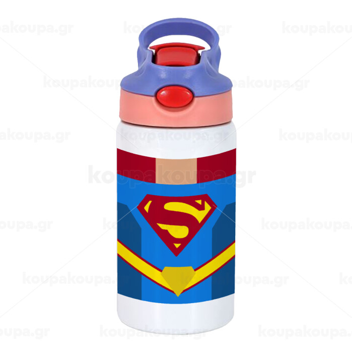 Superman flat, Children's hot water bottle, stainless steel, with safety straw, pink/purple (350ml)