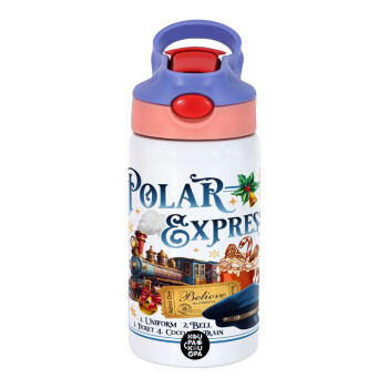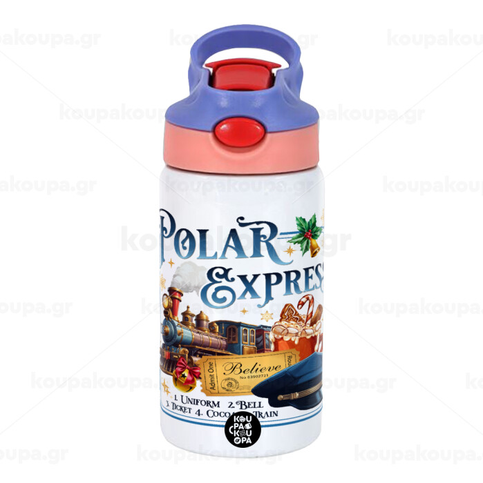 The Polar Express, Children's hot water bottle, stainless steel, with safety straw, pink/purple (350ml)