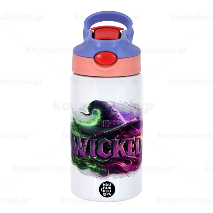 Wicked, Children's hot water bottle, stainless steel, with safety straw, pink/purple (350ml)