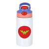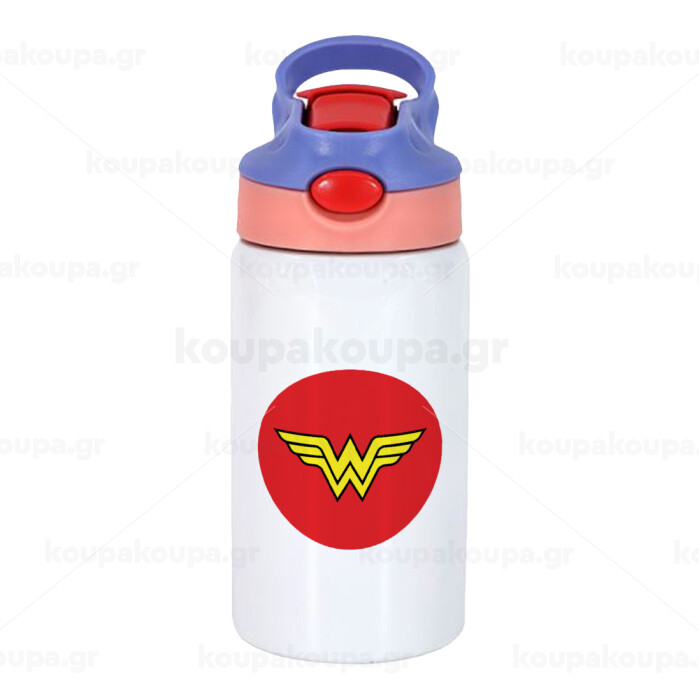Wonder woman, Children's hot water bottle, stainless steel, with safety straw, pink/purple (350ml)
