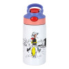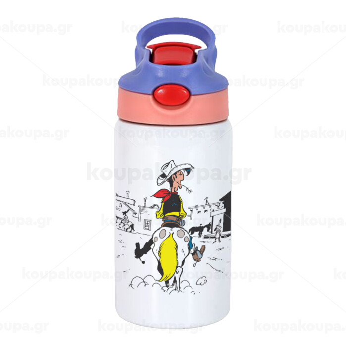 Lucky Luke comic, Children's hot water bottle, stainless steel, with safety straw, pink/purple (350ml)