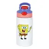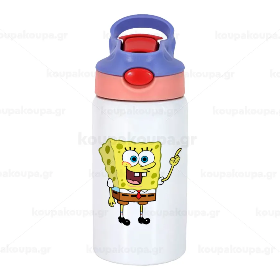 SpongeBob SquarePants character, Children's hot water bottle, stainless steel, with safety straw, pink/purple (350ml)