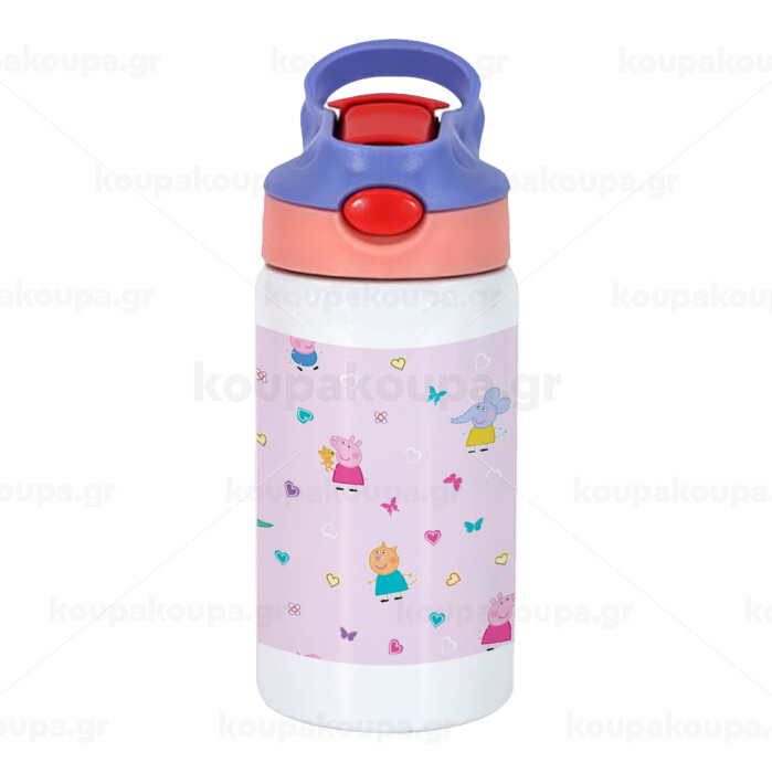 Πέππα το γουρουνάκι και οι φίλοι της, Children's hot water bottle, stainless steel, with safety straw, pink/purple (350ml)
