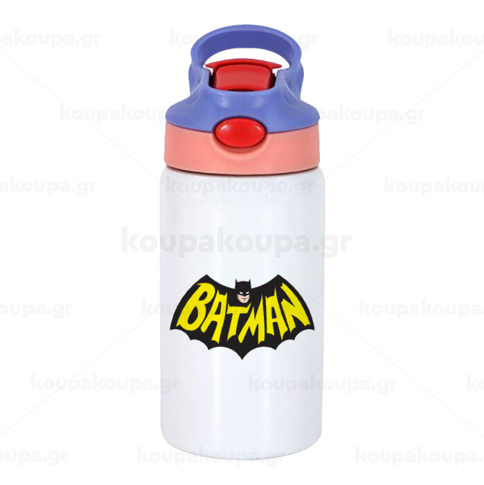 Batman classic logo, Children's hot water bottle, stainless steel, with safety straw, pink/purple (350ml)