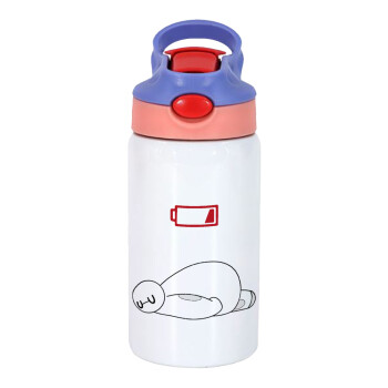 Baymax battery low, Children's hot water bottle, stainless steel, with safety straw, pink/purple (350ml)