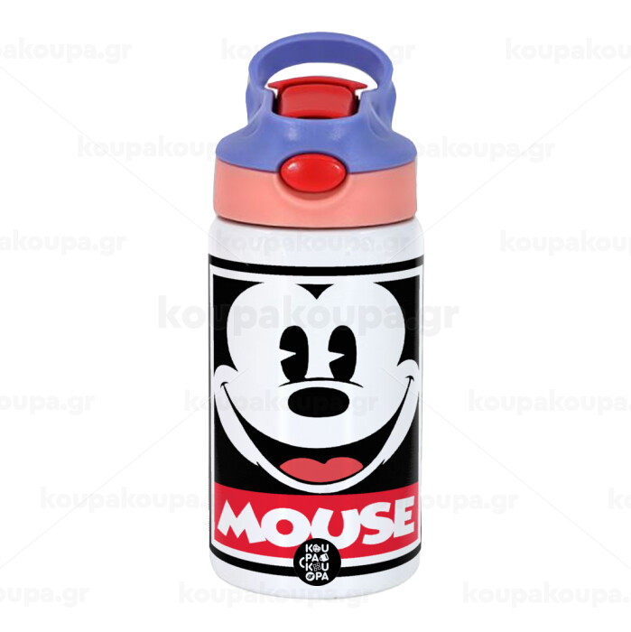 Mickey Mouse, Children's hot water bottle, stainless steel, with safety straw, pink/purple (350ml)