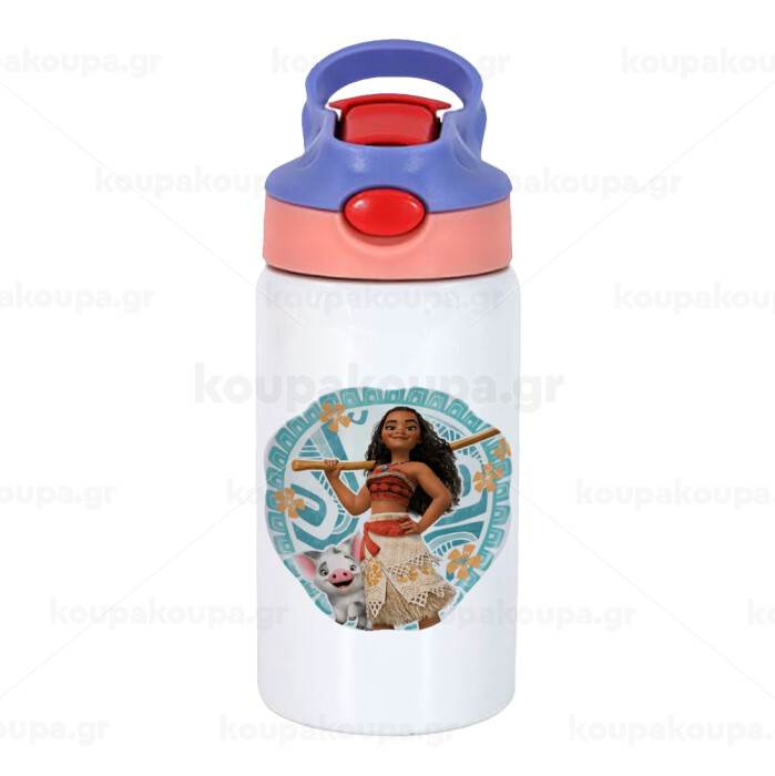 Moana, Children's hot water bottle, stainless steel, with safety straw, pink/purple (350ml)