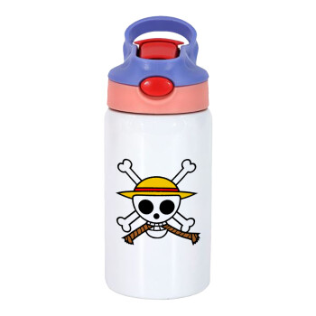 Onepiece skull, Children's hot water bottle, stainless steel, with safety straw, pink/purple (350ml)