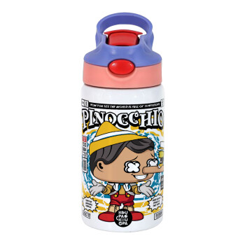Pinocchio, Children's hot water bottle, stainless steel, with safety straw, pink/purple (350ml)