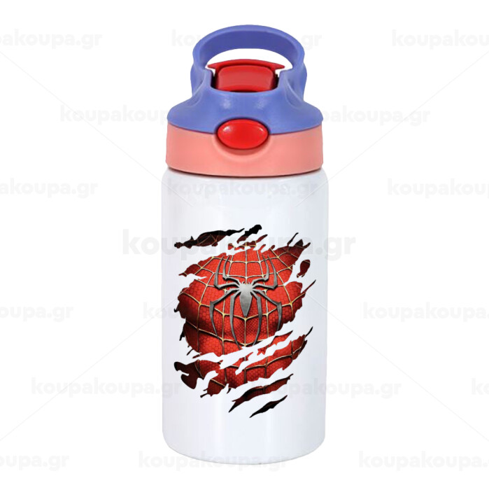 Spiderman cracked, Children's hot water bottle, stainless steel, with safety straw, pink/purple (350ml)
