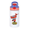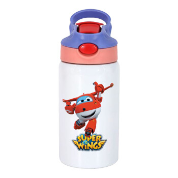 Super Wings, Children's hot water bottle, stainless steel, with safety straw, pink/purple (350ml)