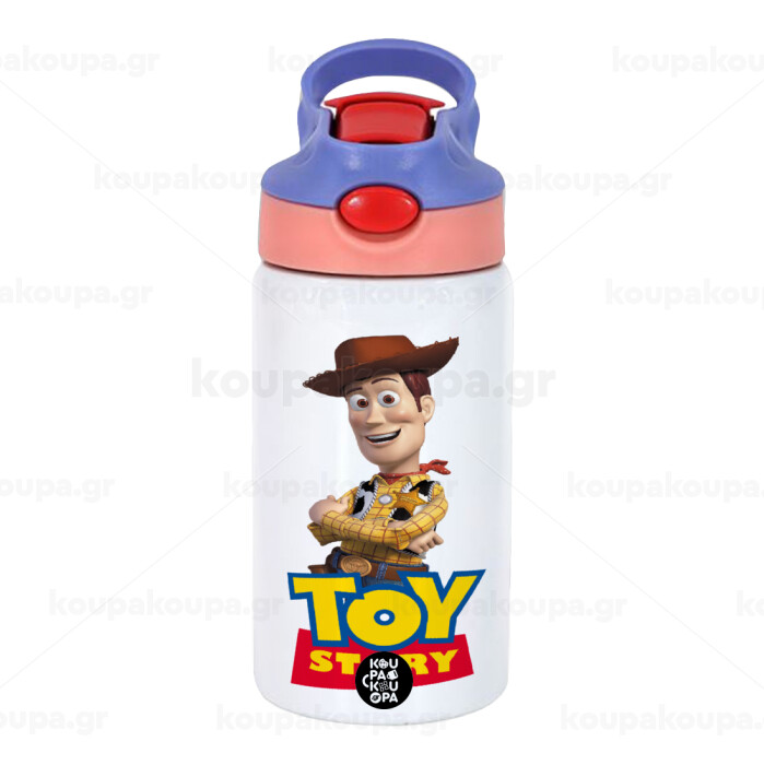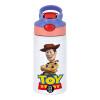 Woody cowboy, Children's hot water bottle, stainless steel, with safety straw, pink/purple (350ml)