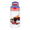 Ηλία ρίχτοοο!!!, Children's hot water bottle, stainless steel, with safety straw, pink/purple (350ml)
