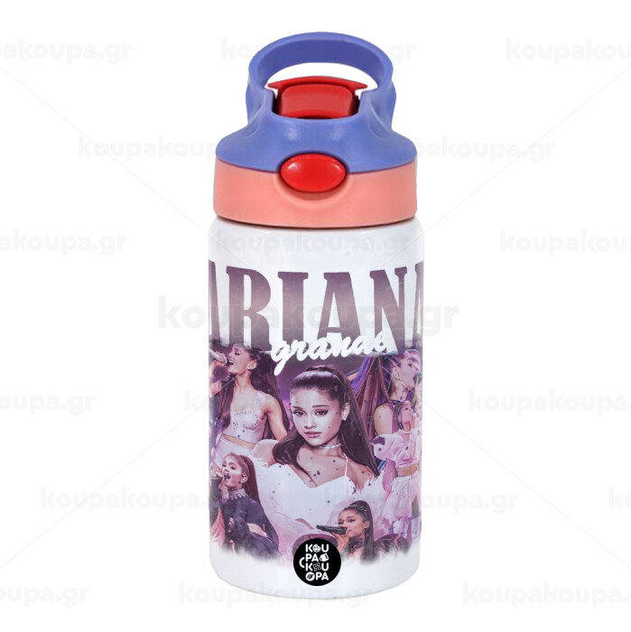 Ariana Grande, Children's hot water bottle, stainless steel, with safety straw, pink/purple (350ml)