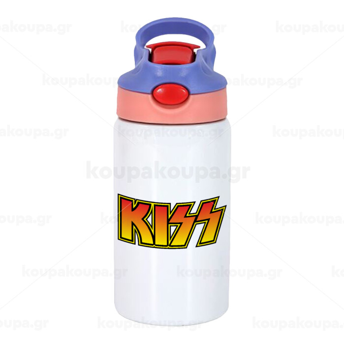 KISS, Children's hot water bottle, stainless steel, with safety straw, pink/purple (350ml)