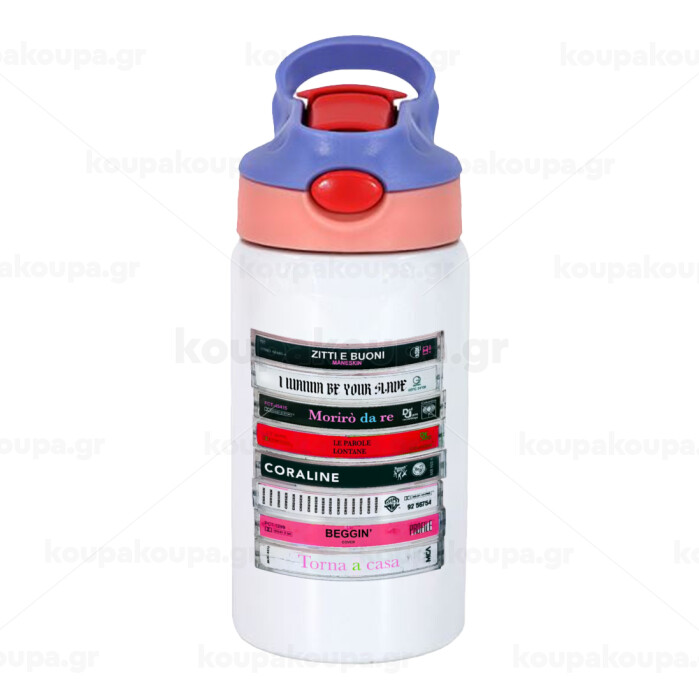 Maneskin Cassette, Children's hot water bottle, stainless steel, with safety straw, pink/purple (350ml)