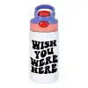 Wish you were here, Children's hot water bottle, stainless steel, with safety straw, pink/purple (350ml)