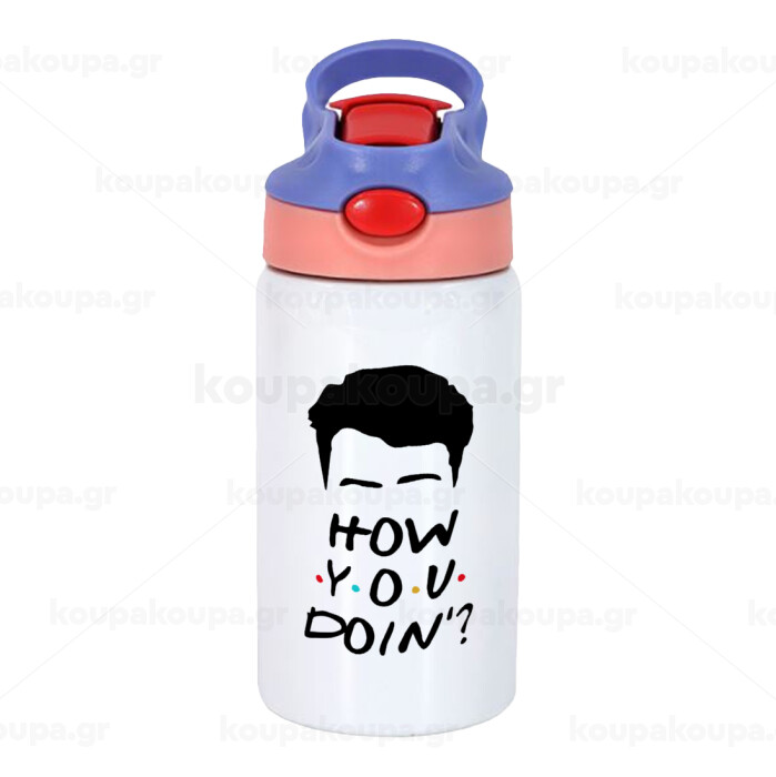 Friends how you doin?, Children's hot water bottle, stainless steel, with safety straw, pink/purple (350ml)