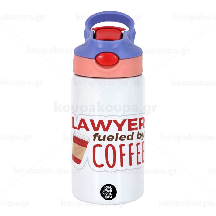 Lawyer fueled by coffee, Children's hot water bottle, stainless steel, with safety straw, pink/purple (350ml)