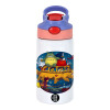 Totoro Catbus, Children's hot water bottle, stainless steel, with safety straw, pink/purple (350ml)