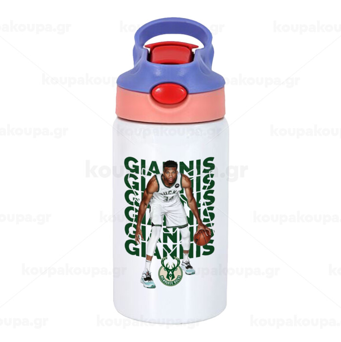 Giannis Antetokounmpo, Children's hot water bottle, stainless steel, with safety straw, pink/purple (350ml)
