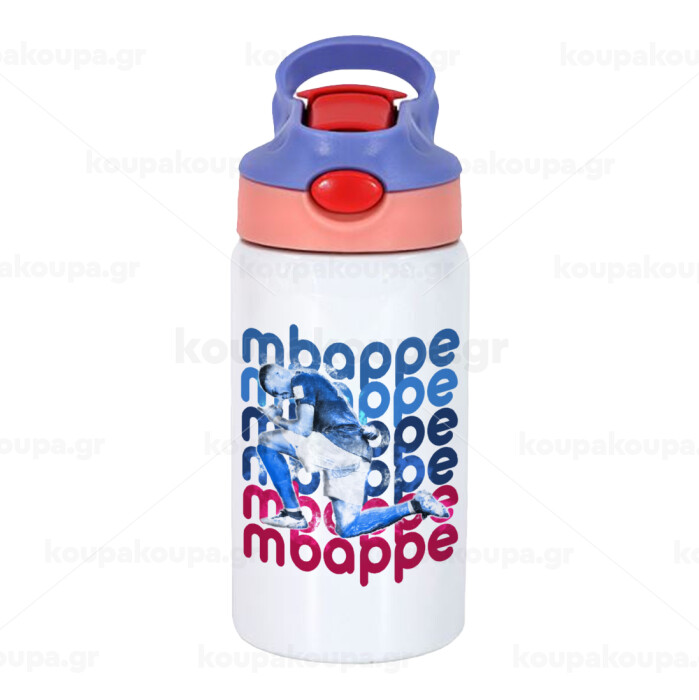 Kylian Mbappé, Children's hot water bottle, stainless steel, with safety straw, pink/purple (350ml)