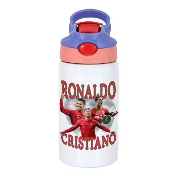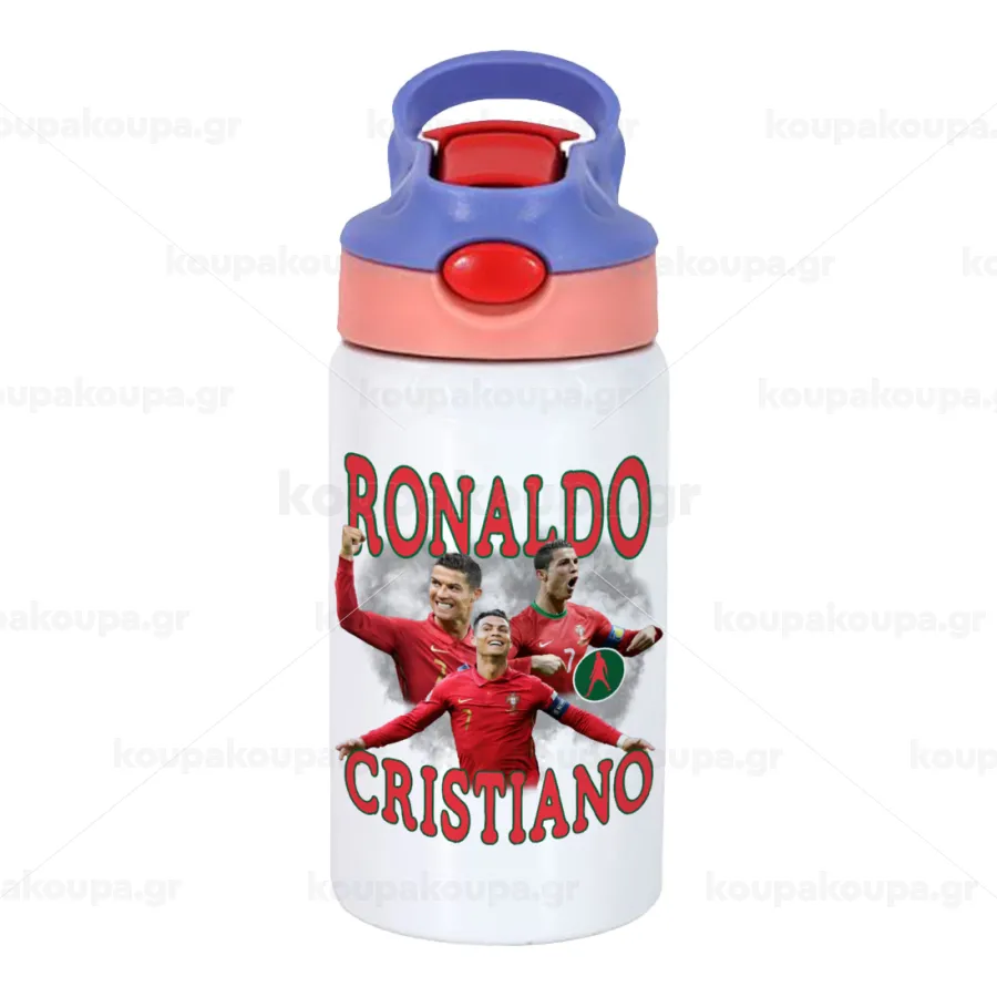 Cristiano Ronaldo, Children's hot water bottle, stainless steel, with safety straw, pink/purple (350ml)