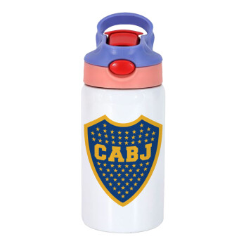 Club Atlético Boca Juniors, Children's hot water bottle, stainless steel, with safety straw, pink/purple (350ml)