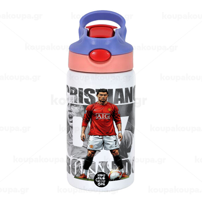 Cristiano Ronaldo (Κριστιάνο Ρονάλντο), Children's hot water bottle, stainless steel, with safety straw, pink/purple (350ml)