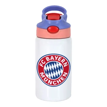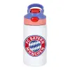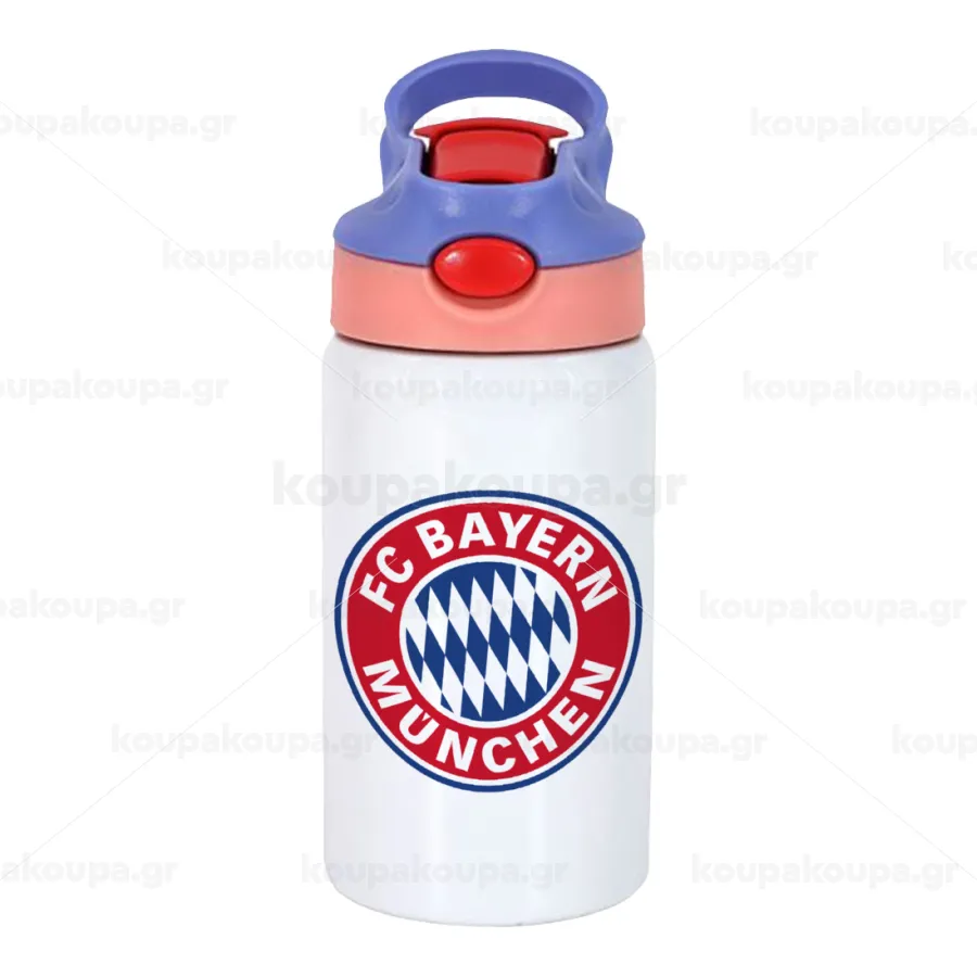 FC Bayern Munich, Children's hot water bottle, stainless steel, with safety straw, pink/purple (350ml)
