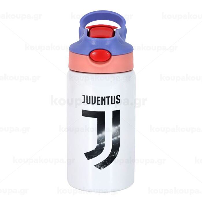 FC Juventus, Children's hot water bottle, stainless steel, with safety straw, pink/purple (350ml)