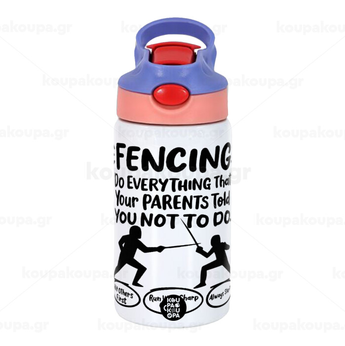 Fencing, do everything that your parents told you not to do., Children's hot water bottle, stainless steel, with safety straw, pink/purple (350ml)