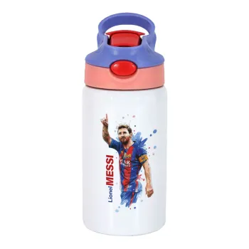 Lionel Messi, Children's hot water bottle, stainless steel, with safety straw, pink/purple (350ml)