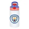 Manchester City FC , Children's hot water bottle, stainless steel, with safety straw, pink/purple (350ml)