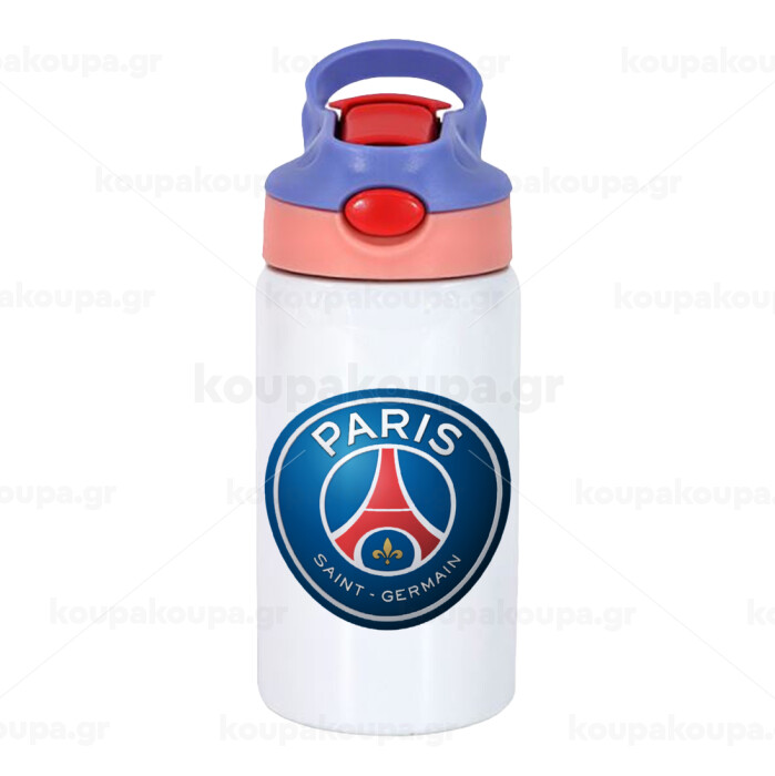 Paris Saint-Germain F.C., Children's hot water bottle, stainless steel, with safety straw, pink/purple (350ml)