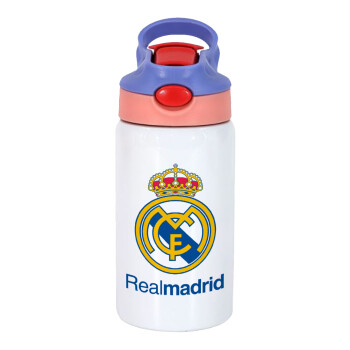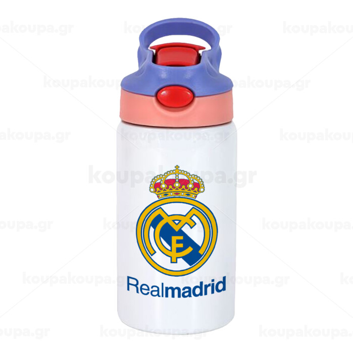 Real Madrid CF, Children's hot water bottle, stainless steel, with safety straw, pink/purple (350ml)