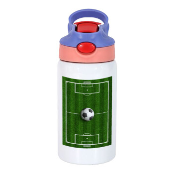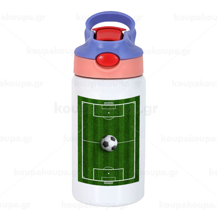 Soccer field, Γήπεδο ποδοσφαίρου, Children's hot water bottle, stainless steel, with safety straw, pink/purple (350ml)