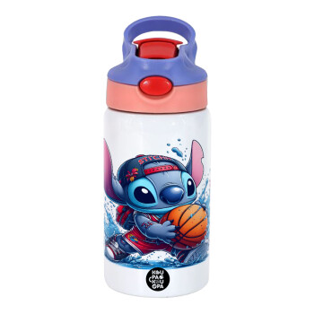 Stitch Basketball, Children's hot water bottle, stainless steel, with safety straw, pink/purple (350ml)