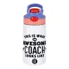 This is what an awesome COACH looks like!, Children's hot water bottle, stainless steel, with safety straw, pink/purple (350ml)