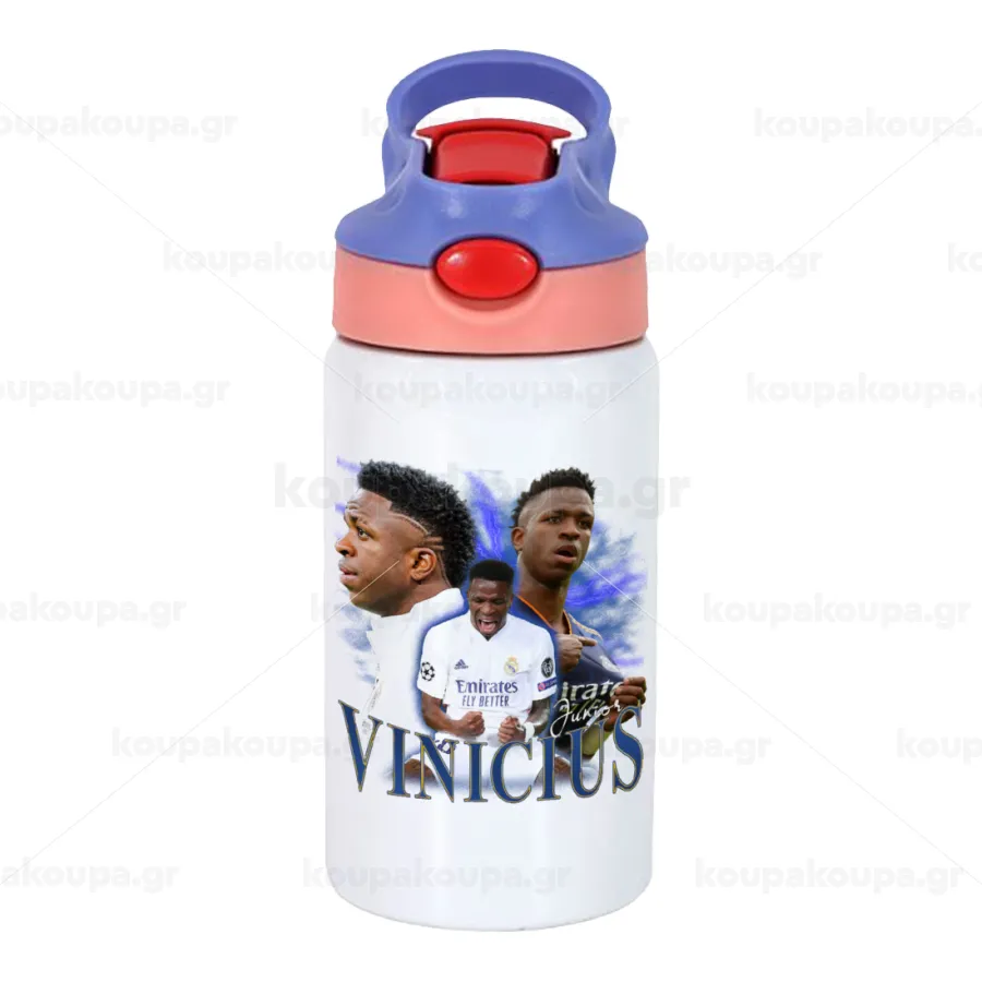 Vinicius Junior, Children's hot water bottle, stainless steel, with safety straw, pink/purple (350ml)