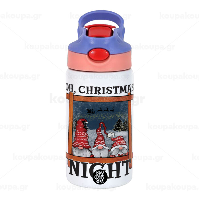 Oh Christmas Night, Children's hot water bottle, stainless steel, with safety straw, pink/purple (350ml)