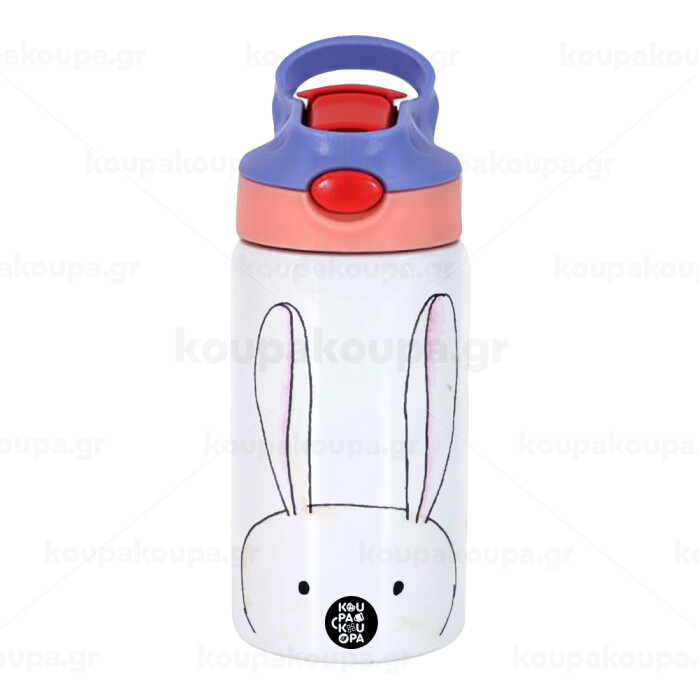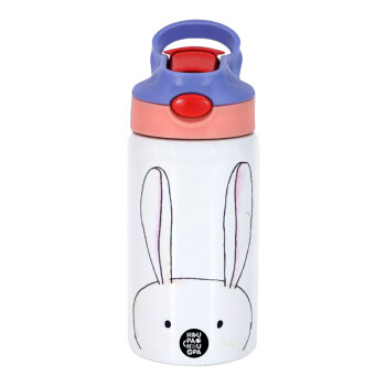 Ο λαγός του πάσχα, Children's hot water bottle, stainless steel, with safety straw, pink/purple (350ml)