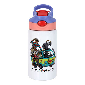 Halloween Friends Scooby Doo, Children's hot water bottle, stainless steel, with safety straw, pink/purple (350ml)