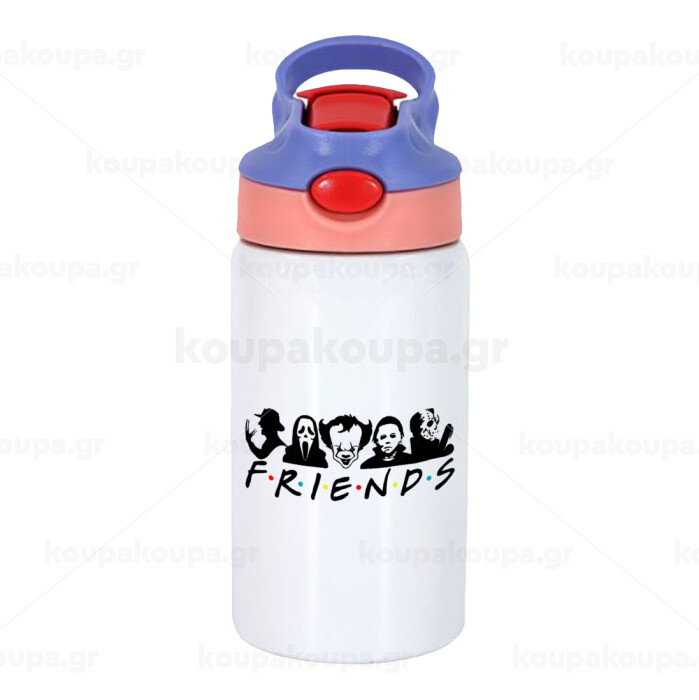 Halloween Friends, Children's hot water bottle, stainless steel, with safety straw, pink/purple (350ml)