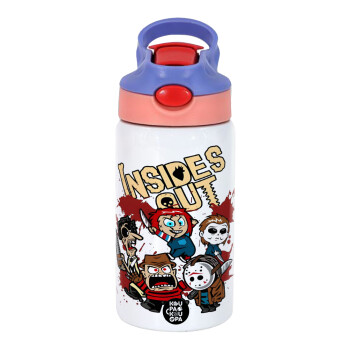 Halloween Inside out, Children's hot water bottle, stainless steel, with safety straw, pink/purple (350ml)