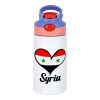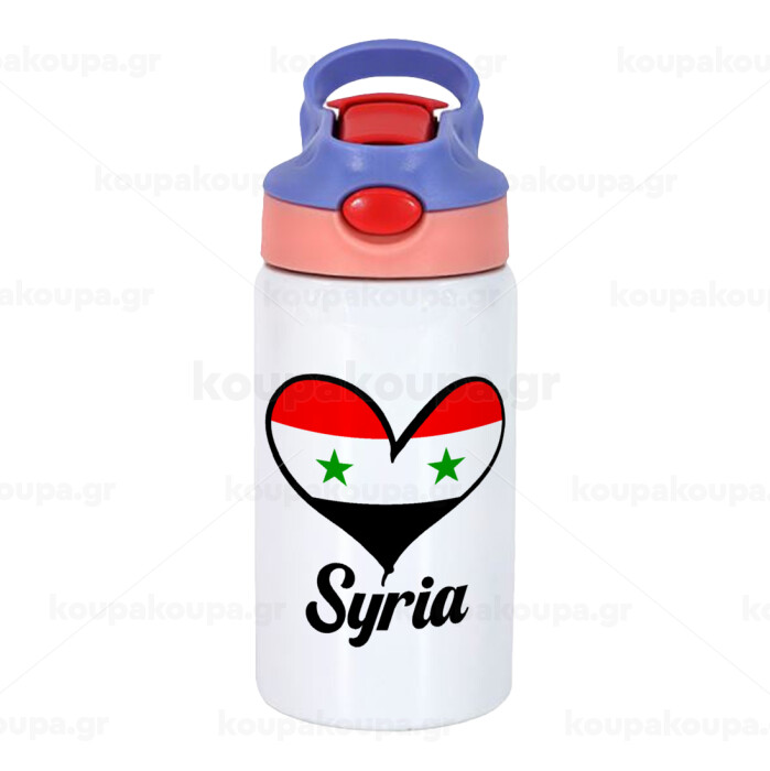 Syria flag, Children's hot water bottle, stainless steel, with safety straw, pink/purple (350ml)