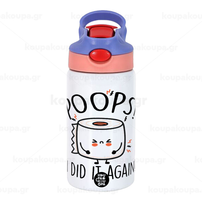 Poops!...I Did It Again, Children's hot water bottle, stainless steel, with safety straw, pink/purple (350ml)