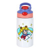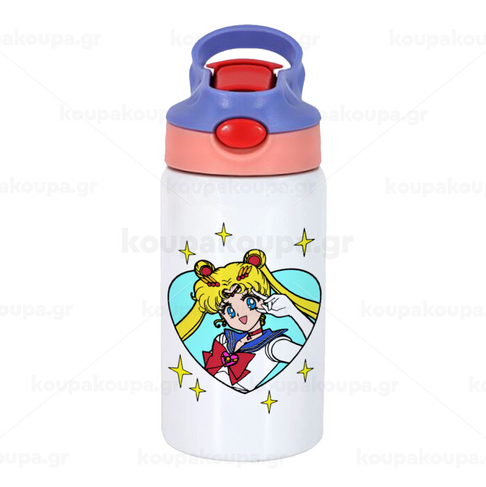 Sailor Moon star, Children's hot water bottle, stainless steel, with safety straw, pink/purple (350ml)